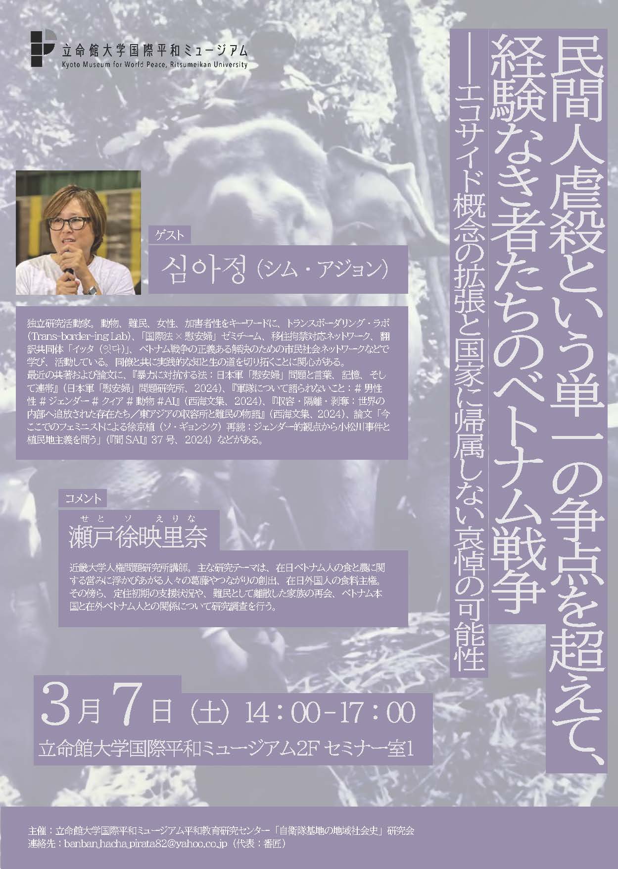 イベント3/7(土) 平和教育研究センター 公開研究会「民間人虐殺という単一の争点を超えて、経験なき者たちのベトナム戦争──エコサイド概念の拡張と国家に帰属しない哀悼の可能性」を開催します -