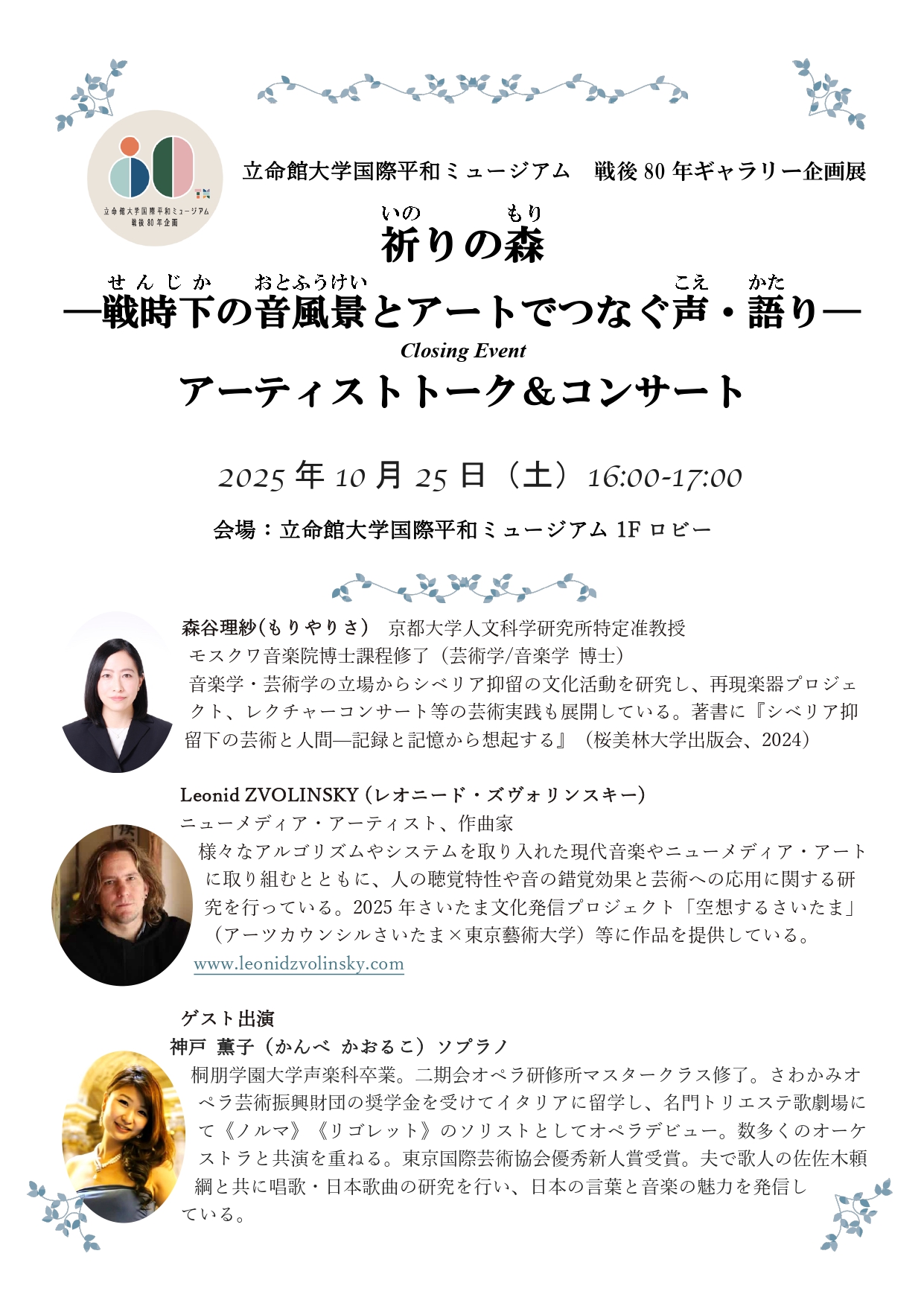 戦時下の音風景とアートでつなぐ声・語り—アーティストトーク&コンサート